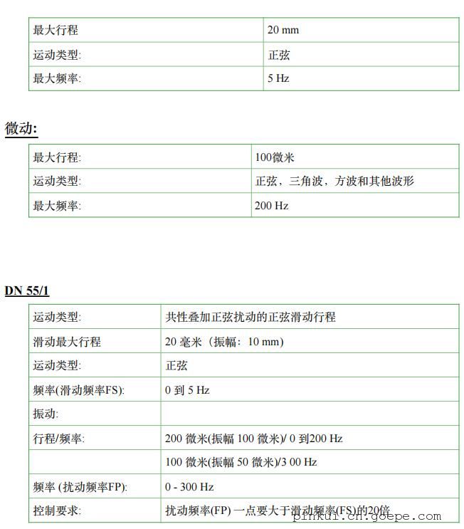 信号发⽣器及信号分析系统组件为可选附件。它的主要功能为在试样在滑动过程的同时,实现共轴振动。设计⽅法如下:标准伺服放⼤器在输⼊段设置了⼀个求和点,专门⽤于处理双线程输⼊⼯作。该设计⽅法相当于增加了⼀部信号发⽣器,合并处理两个独⽴的输⼊信号,⽐如加成低频长⾏程信号与⾼频短⾏程信号,触发带振动的往复运动。